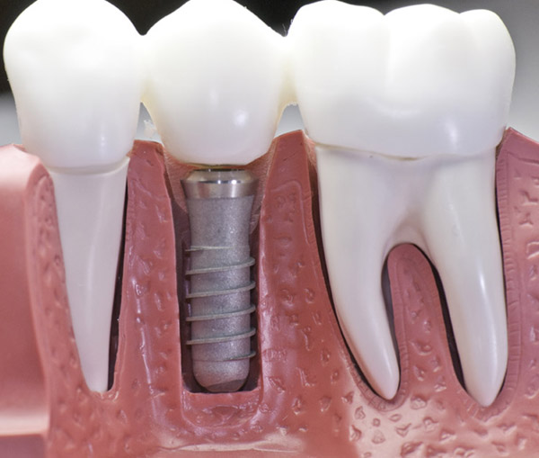 Es el tratamiento de primera elección y permanente para el reemplazo de dientes ausentes o faltantes. Son pequeños aditamentos biocompatibles fuertes, seguros y cómodos diseñados especialmente para reemplazar las raíces de los dientes perdidos o ausentes ya que se integran de una manera natural al hueso mandibular o maxilar ayudando a preservar la altura osea y estimulando en el momento de la masticación a su conservación y salud dando, como resultado un buen pilar intraoseo que brinda soporte a una corona o hasta una prótesis total devolviendo así la función masticatoria sin dañar a los dientes sanos adyacentes y devolviéndole la seguridad al masticar y al hablar funcionando como si fueran dientes naturales.